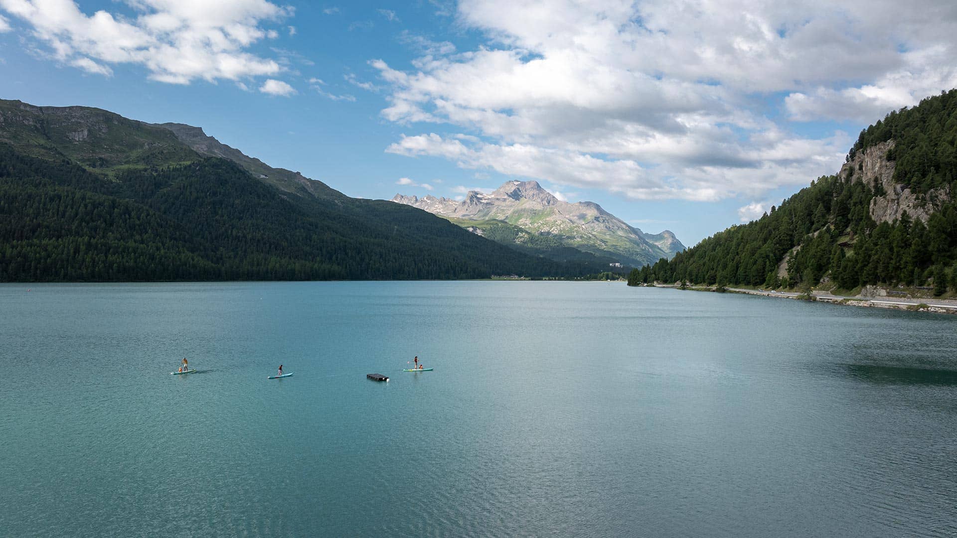 Auf dem St. Moritzer- und Silsersee gehören die Morgenstunden den Kanus, SUPs und Kajaks. Mittags setzt Malojawind Kites und Segel in Bewegung. Mehr Adrenalin bietet das River Rafting durch die Giarsun-Schlucht.