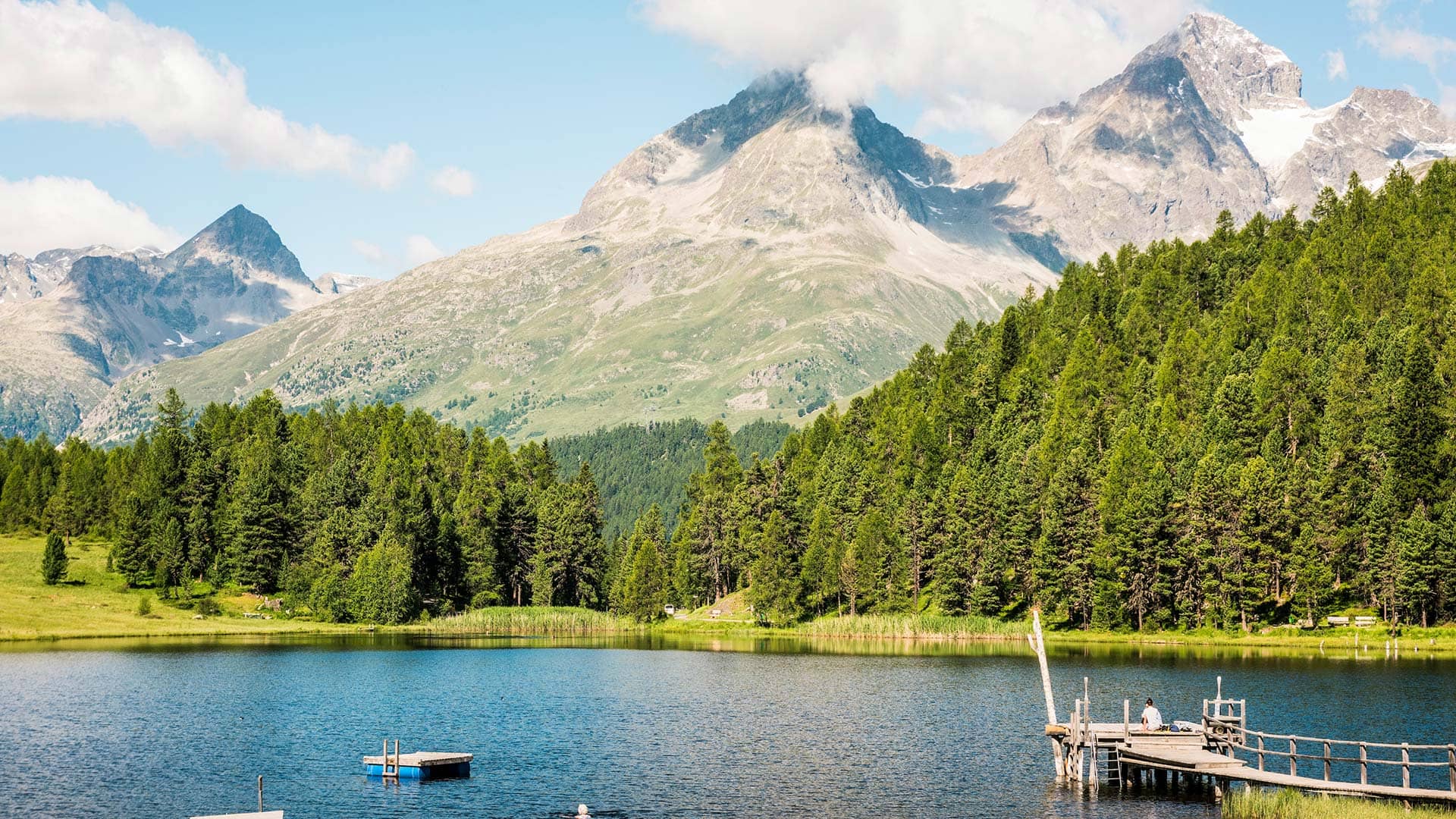Die Engadiner Seen sind eine belebende Erfrischung – auch an warmen Sommertagen. Am idyllischen Lej da Staz führen Holzstege ins klare Wasser, der Lej Marsch verlockt mit feinem Sandstrand.