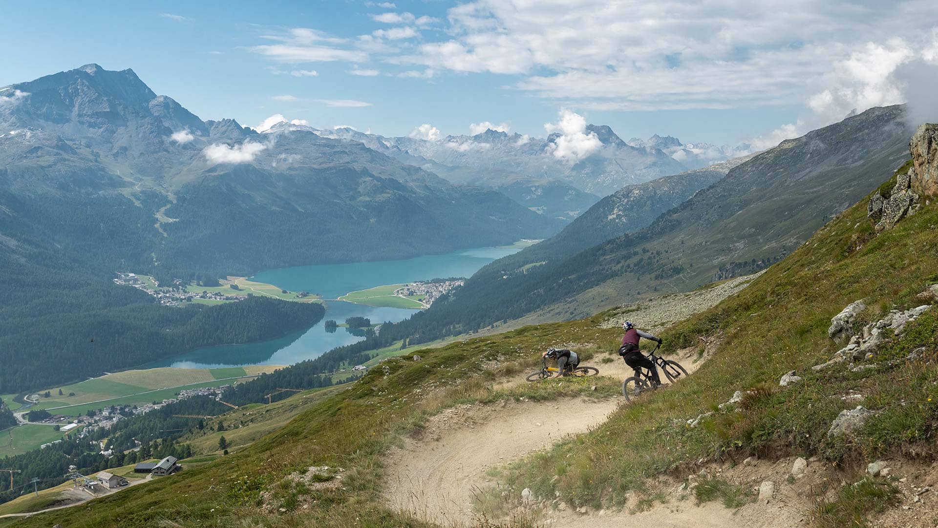 Über 400 Kilometer Bike-Strecken schlängeln sich durch das Engadin – von entspannten Flowtrails bis hin zu wagemutigen Abfahrten am Corviglia. Empfehlung: Frühmorgens hinauf zum Piz Nair für ein Frühstück über den Wolken.